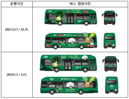 부산시는 7일부터 내년 3월 31일까지 '초록우산 나눔버스' 1대를 추가 운행한다고 밝혔다.