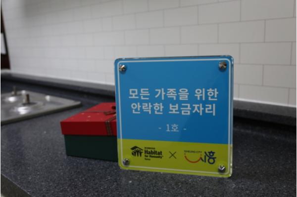 시흥시가 지난 5일 한국해비타트와 함께 반지하주택 전면 개보수 사업 ‘1호 가구’ 입주 기념 현판을 해당 가구에 전달했다.