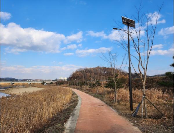 한천체육공원은 많은 주민들이 평소에 운동과 산책을 즐기는 곳으로 태양광 LED 가로등이 설치됨에 따라 야간보행에 안심하고 쾌적한 환경을 제공하고 태양광 충전으로 가로등을 밝혀 공공전기료도 절감할 수 있다.