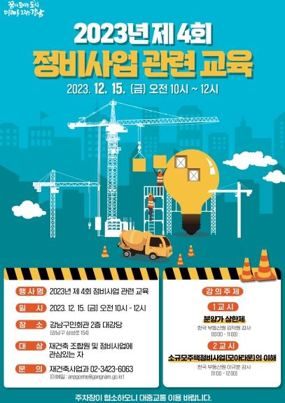 꿈이 모이는 도시, 미래를 그리는 강남구가 오는 15일 10시~12시 강남구민회관 2층 대강당에서 분양가상한제도와 모아타운을 주제로 주택 정비사업 교육을 실시한다.