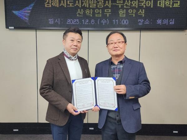 김해시도시개발공사, 부산외국어대학교는 지난 12월 06일 김해시도시개발공사 회의실에서 업무협약을 체결, 긴밀한 산학협력 체계를 구축하기로 했다.