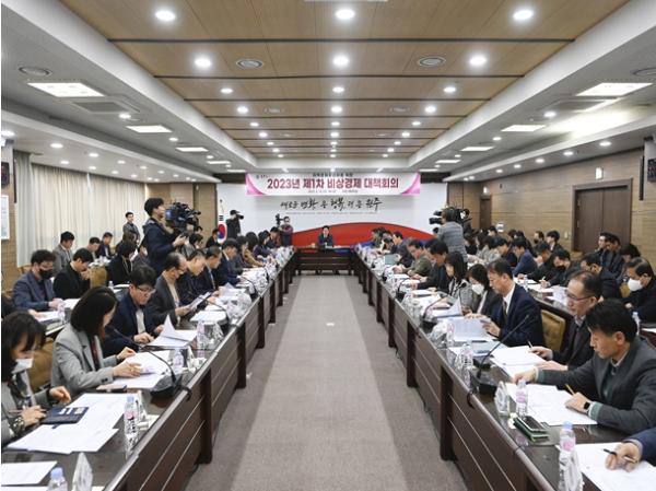 시는 고물가·고금리 등으로 어려운 경제 상황 속에서 서민물가 안정 및 경제 활성화를 위해 올해 2월 15일(수) 원강수 원주시장 주재로 비상경제 대책회의를 개최했다.