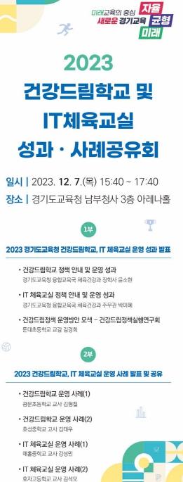 경기도교육청이 남부청사에서 ‘건강드림학교 및 IT 체육교실 성과·사례공유회’를 개최한다.