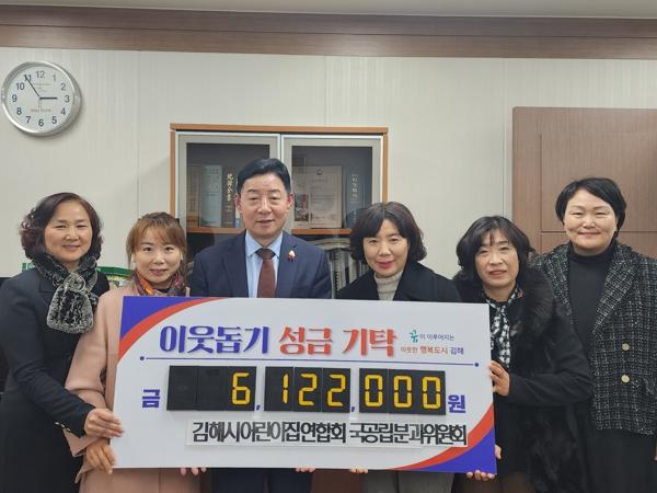 김해시는 어린이집연합회 국공립분과위원회에서 성금 612만2,000원을 기탁했다고 7일 밝혔다.