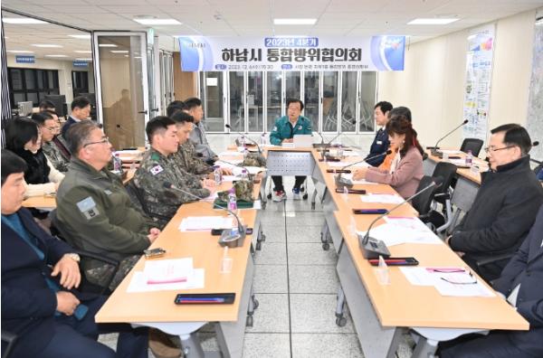 하남시가 6일 하남시청 통합방위 종합상황실에서 ‘2023년도 4분기 통합방위협의회 정기회의’를 개최했다.