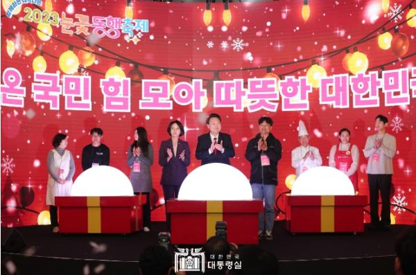 윤석열 대통령은 12월 7일 오후 서울 DDP(동대문디자인플라자)에서 개최된 ‘2023 눈꽃 동행축제 개막행사’에 참석해 소상공인들을 격려했다.