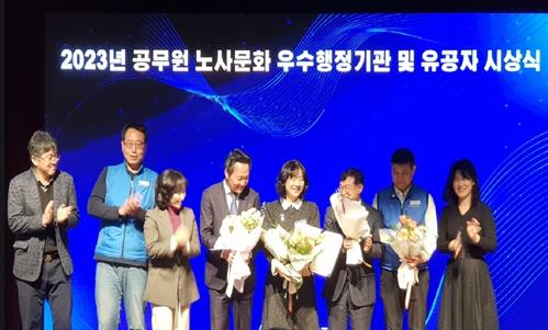 한편, 개인 분야에서는 건전한 노사문화 구축 및 직원 권익 보호에 이바지한 공로로 김은경 공무원복지팀장이 국무총리 표창을, 윤종문 노동조합 부위원장 등 공무원 3명이 장관 표창을 받았다.