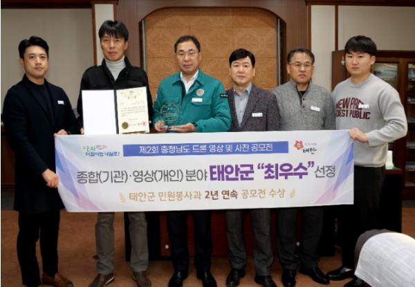 태안군은 영목항 전망대와 백화산 구름다리, 안면도 자연휴양림, 격렬비열도 등을 드론으로 촬영한 작품 ‘천혜의 자연, 태안을 담다’를 출품했으며, 다른 지역에서 볼 수 없는 서해바다와 임야의 조화, 그리고 자연의 사계절을 아름답게 담아냈다는 평가를 받아 서건형 주무관이 개인 영상부문 최우수상을 받았다.