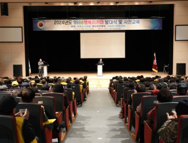 ‘9988 행복지키미’는 65세 이상 노인 411명을 선발해 같은 마을에 사는 65세 이상의 홀로 살거나 거동이 불편한 노인의 안부를 묻고 안전을 돌보는 사업이다.