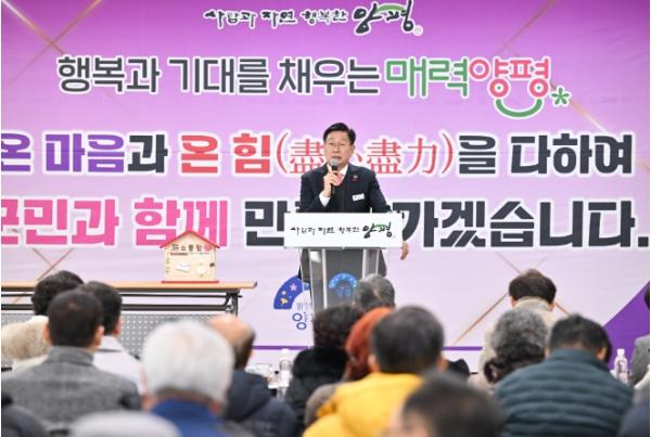 [singers news 씽어즈뉴스, 와보소기자] 전진선 양평군수는 갑진년 새해 ‘행복과 기대를 채워가는 매력 양평’을 군정의 최우선 목표과 가치로 삼고 2024년 양평 군정을 공유하고 군민의 목소리를 듣고자 지난 8일부터 25일까지 13일간 대군민 간담회인 ‘군민과 함께하는 소통한마당’을 개최했다.