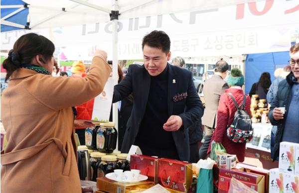 [singers news 씽어즈뉴스, 와보소기자] 오언석 도봉구청장이 지난 1월 31일 도봉구청 전면광장에서 열린 ‘설맞이 농축수산물 직거래장터’를 찾아 지역특산물을 구매하고 상인들과 인사를 나눴다.