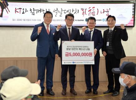 KT 부산경남본부 김동환 남부산지사장은 "민족 대명절인 설날을 앞두고 어르신들께 따뜻한 정을 나눌 수 있어 기쁘고, 앞으로도 사회 공헌 활동을 지속적으로 실천하여 도움의 손길이 필요한 곳에 함께하는 기업이 되겠다"고 말했다.
