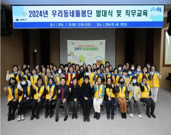 [singers news 씽어즈뉴스, 와보소기자] 서울 강북구가 지난달 30일 강북구청 대강당에서 2024년 우리동네돌봄단 발대식 및 직무교육을 개최하고 본격적인 활동에 돌입했다.