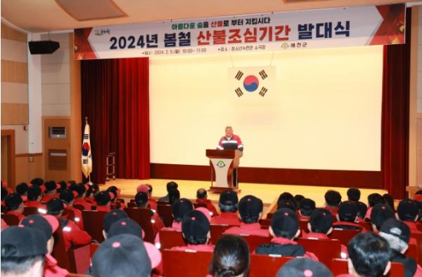 군은 지난 5일 청소년수련관에서 산불감시원, 산불전문예방진화대, 읍?면산업팀장 등 144여 명이 참석한 가운데『2024년 봄철 산불조심기간』을 맞아 산불예방 결의를 다지는 발대식을 갖고 본격적인 산불방지활동에 들어갔다.