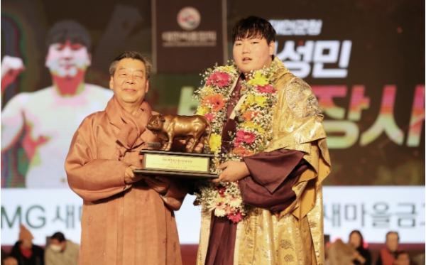 군에 따르면, 최성민(22, 태안군청) 선수는 설날장사 씨름대회 마지막 날인 12일 태안종합실내체육관에서 열린 백두장사 결정전에서 ‘맞수’ 김민재(22, 영암군민속씨름단) 선수를 3-2로 제압하고 통산 5번째 장사에 등극하는 기염을 토했다.