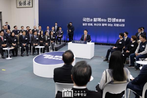 오늘 민생토론회는 지방시대위원회 이만기 위원(인제대 교수, 前 천하장사 씨름선수)의 사회로 진행됐으며, 정선용 학생(부산진고), 이나은 학생(부산대) 등 부산지역 학생과 학부모, 앤드류 밀라드 주한유럽상공회의소 부산지부장, 이준호 EMP벨스타 대표 등 기업인, 행정 각 분야 학계 및 전문가, 일반 국민 등 100여 명이 참석했으며, 정부에서는 우동기 지방시대위원회 위원장, 이주호 부총리 겸 교육부 장관, 박상우 국토교통부 장관, 강도형 해양수산부 장관, 오영주 중소벤처기업부 장관 등이, 대통령실에서는 성태윤 정책실장, 박춘섭 경제수석, 장상윤 사회수석 등이 참석했다.