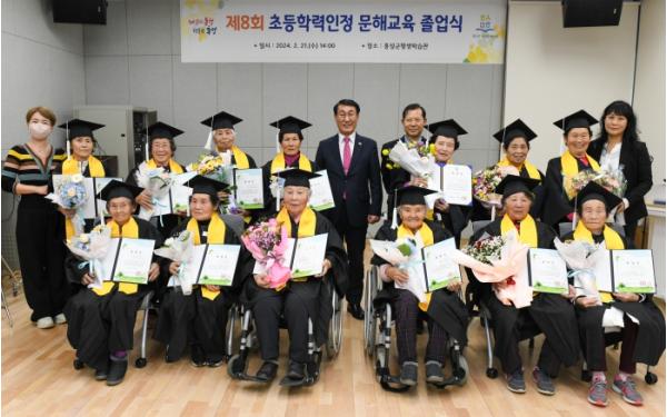 이날 졸업식에는 이용록 군수를 비롯해 졸업생, 가족, 문해교원과 마을주민 등 70여 명이 참석한 가운데, 3년간 꾸준히 학업에 임하고 졸업에 이르게 된 기쁨을 나누고 교육 과정을 지도해 준 유성희(홍성읍 역재마을 교원), 윤성준(홍북읍 하산마을 교원) 문해교원과 사제지간의 끈끈한 정을 확인했다.