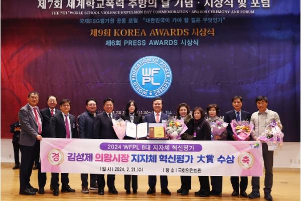 [singers news 씽어즈뉴스, 와보소기자] 김성제 의왕시장이 2월 21일 국회의원회관 대회의실에서 열린 2024 WFPL 8대 지자체 혁신평가 시상식에서 ‘대상(大賞)’을 수상하는 영예를 안았다.