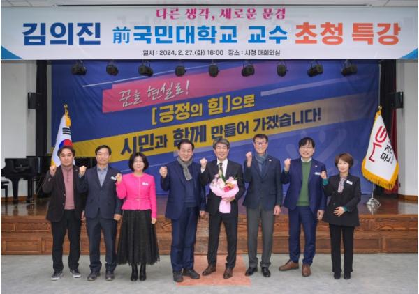 [singers news 씽어즈뉴스, 와보소기자] 문경시는 27일 오후 4시 시청 대회의실에서 김의진 전 국민대학교 교수를 초청하여‘다른 생각, 새로운 문경’이라는 주제로 공직자 소양 함양 특강을 개최했다.