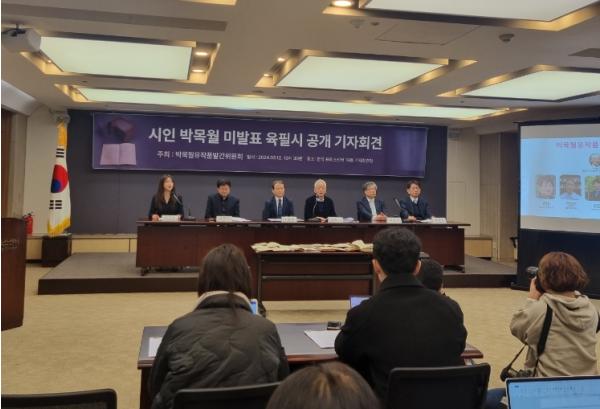 13일 경주시에 따르면 박목월유작품발간위원회는 12일 서울 중구 프레스센터에서 기자회견을 열고 박목월의 미공개 시를 공개했다.
