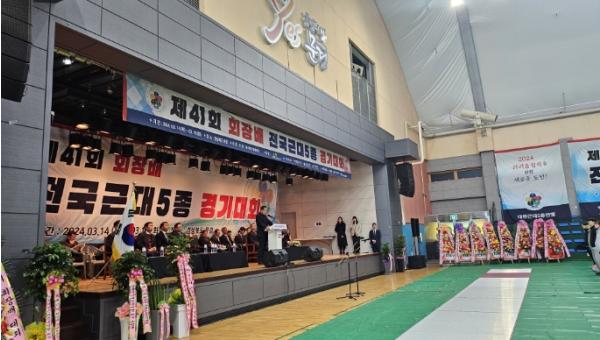 [singers news 씽어즈뉴스, 와보소기자] 문경시는'제41회 회장배 전국 근대5종 경기대회'를 14일 개막식을 시작으로 19일까지 개최한다. 이날 개막식에는 신현국 문경시장, 이한준 대한근대5종연맹회장(LH 사장), 황재용 문경시의회의장, 김동열 국군체육부대장 및 시의원, 근대5종 관계자들이 참석했다.