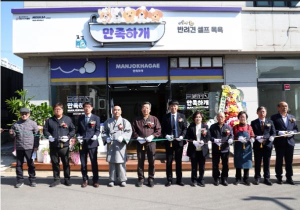 군은 지난 14일 태안읍 동문리에서 가세로 군수 및 군의원을 비롯해 태안시니어클럽 한선규 관장, 충남도 노인일자리통합지원센터 김정호 센터장 등 30여 명이 참석한 가운데 반려견 셀프목욕 전문 매장인 ‘만족하개’ 개소식을 가졌다고 밝혔다.