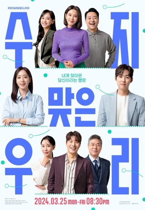 KBS 1TV 새 일일드라마 ‘수지맞은 우리’는 ‘우당탕탕 패밀리’ 후속으로 오는 25일(월) 저녁 8시 30분 첫 방송 예정이다.