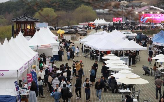 그러나 최근 흥행 중인 영화 ‘파묘’에서 아이디어를 얻어 꽃바람을 몰고 와 대청호 벚꽃축제에 벚꽃을 피우겠다는 소망을 재치 있게 담아낸 영상과 벚꽃을 사수하기 위한 ‘동구 벚꽃특공대’ 등 누리소통망(SNS)을 통한 이색 홍보가 화제가 되면서 축제장은 많은 방문객들로 활기가 넘쳤다.