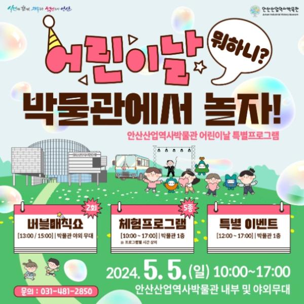 [singers news 씽어즈뉴스, 와보소기자] 안산시는 다음 달 5일 안산산업역사박물관에서 102주년 어린이날을 기념해 특별프로그램 ‘어린이날 뭐하니? 박물관에서 놀자!’를 운영한다고 24일 밝혔다.
