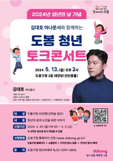 [singers news 씽어즈뉴스, 와보소기자] 도봉구가 2024년 성년의 날(5월 20일)을 맞아 오는 5월 13일 오후 2시 도봉구청 2층 선인봉홀에서 성년의 날 기념 ’도봉 청년 토크콘서트’를 개최한다.