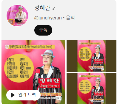 ★정혜란 가수가, 유튜브 공식가수되셨어요 축하해주세요