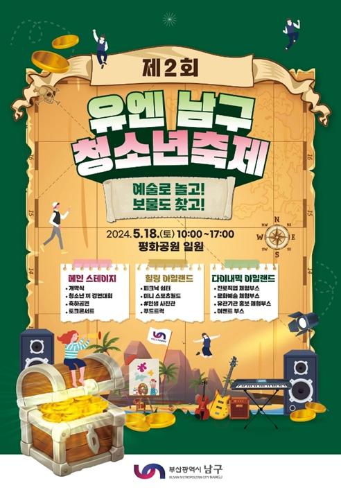 오은택 남구청장은 “5월 청소년의 달에 제2회 유엔남구 청소년축제가 행복한 선물이 될 수 있기를 기대하며, 친구 혹은 가족과 함께 자신만의 보물을 찾을 수 있기를 희망한다”고 밝혔다.
