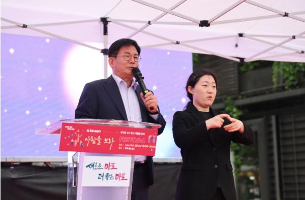 본격적인 행사에 앞서 박강수 마포구청장은 장애공감체험존과 다양한 플리마켓, 바자회, 전시 등이 열린 부스를 둘러보는 시간을 가졌다.
