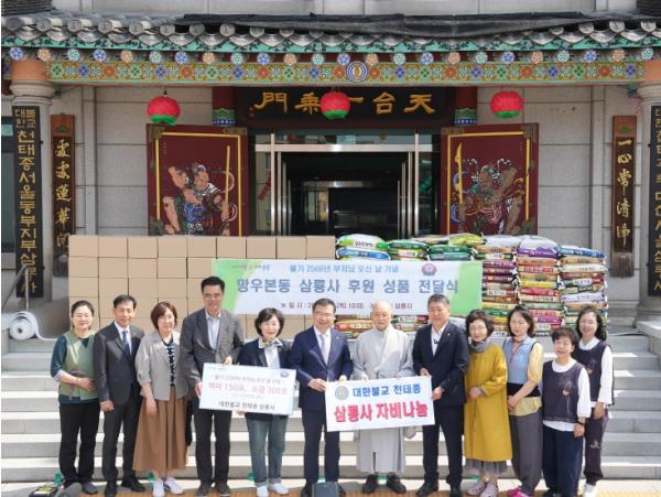 [singers news 씽어즈뉴스, 와보소기자] 중랑구 망우본동주민센터가 지난 9일 대한불교 천태종 삼룡사로부터 ‘불기 2568년 부처님 오신 날’ 기념 후원 성품을 전달받았다.