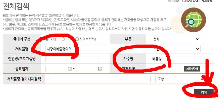 ◆가수님의 노래는 음악저작권협회에 등록되었는지 꼭 확인해보세요
