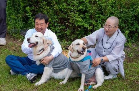 이날 템플스테이에 참가한 반려견과 가족은 절 산책하기, 스님과의 차담, 소원지 쓰기, 점심 공양, 108배 체험 및 예불, 연꽃등 만들기 등을 체험했다.