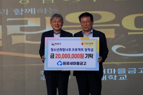 [singers news 씽어즈뉴스, 와보소기자] 익산시는 원광새마을금고가 저소득 가정 청소년을 위한 '익산희망나무프로젝트'에 성금 2,000만 원을 기부하며 지역사회 나눔 문화 확산에 앞장섰다고 밝혔다.