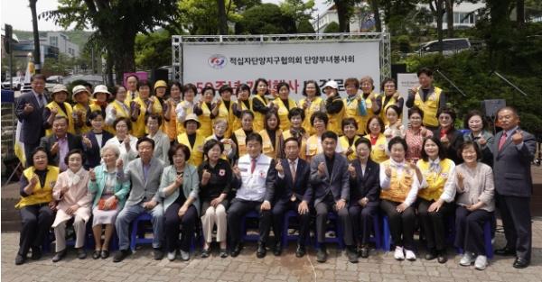 [singers news 씽어즈뉴스, 와보소기자] 적십자 단양부녀봉사회는 지난 20일 오전 11시 단양읍 중앙공원에서 50주년 기념행사 및 경로잔치를 개최했다.