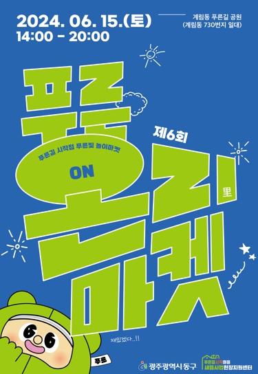 [singers news 씽어즈뉴스, 와보소기자] 광주 동구는 오는 6월 15일 오후 2시부터 푸른길시작마을 새뜰사업 일환으로 마련된 계림동 푸른길시작마을 축제 ‘제6회 푸른온리(ON里)마켓’을 개최한다고 밝혔다.