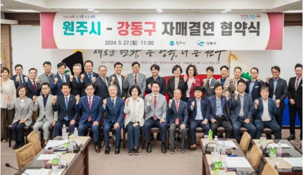 [singers news 씽어즈뉴스, 와보소기자] 강동구는 지난 27일 강원특별자치도 원주시와 ‘친선결연’ 협약을 체결했다.