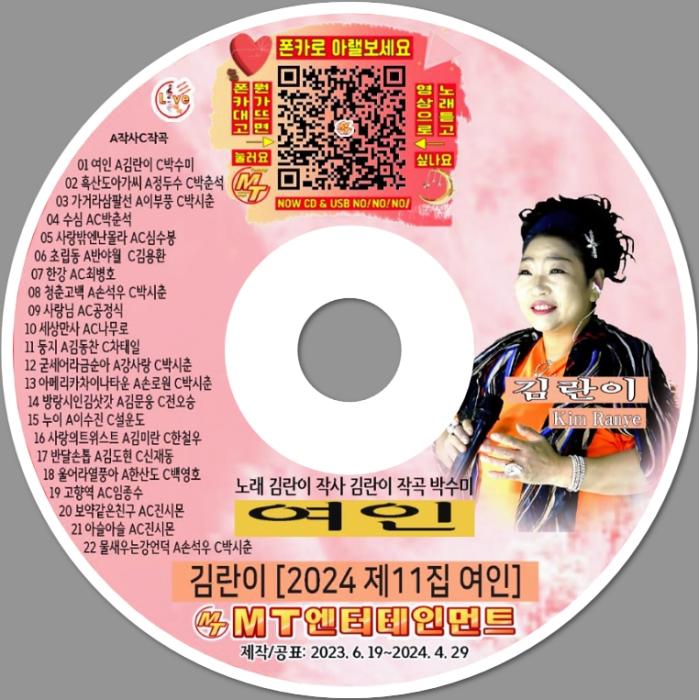 앨범명 "김란이의 2024 제11집 여인"이 2024.6.5 정오에 발매되었습니다