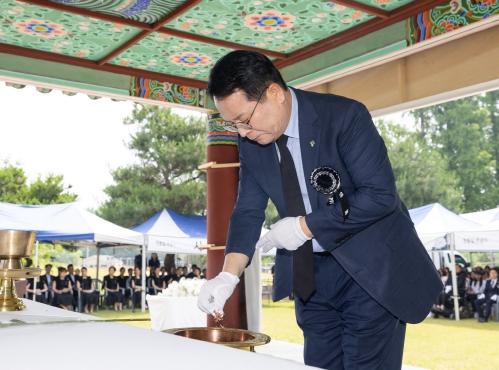 이날 추념식에는 정헌율 익산시장과 최종오 익산시의회 의장을 비롯해 보훈가족, 국회의원, 도의원, 시의원, 지역 기관장, 학생, 시민 등 700여 명이 참석했다.