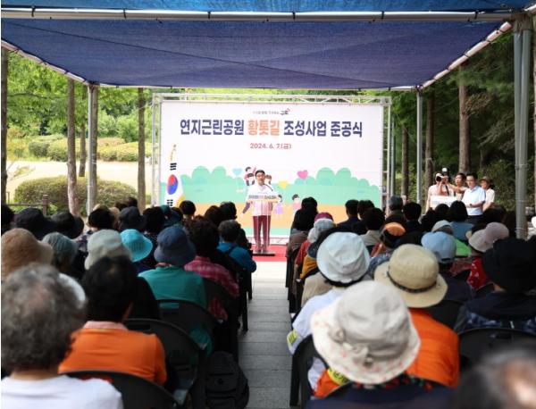 구는 구비 5억 원을 투입해 지난 3월부터 약 3개월간 460미터(m) 길이의 황톳길 조성 공사를 마쳤으며, 7일 오후 이를 기념하는 준공식을 개최했다.