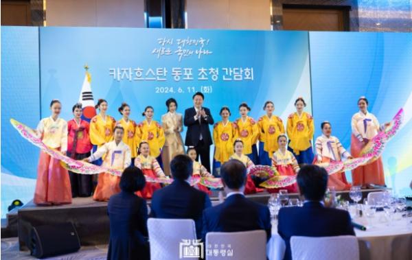 [singers news 씽어즈뉴스, 와보소기자] 카자흐스탄을 국빈 방문 중인 윤석열 대통령은 김건희 여사와 함께 오늘(현지시간 6. 11, 화) 저녁 카자흐스탄 아스타나에서 현지 동포 약 120명을 초청해 만찬을 겸한 간담회를 가졌다.