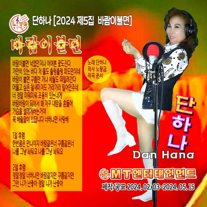 앨범명 - "단하나의 2024 제5집 바람이불면"은 2024.6.11 정오에 발매되었습니다
