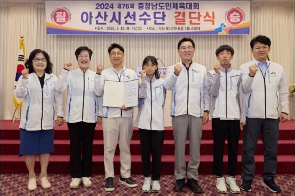 [singers news 씽어즈뉴스, 와보소기자] 아산시는 13일 서산시 베니키아호텔에서 ‘2024 제76회 충청남도민체육대회(이하 충남도민체전) 출전 선수단 결단식’을 개최했다.