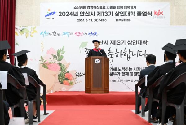 [singers news 씽어즈뉴스, 와보소기자] 안산시는 이민근 시장이 지난 13일 대부문화센터에서 개최된 제13기 상인대학 졸업식에 참석해 축하 인사를 전했다고 14일 밝혔다.