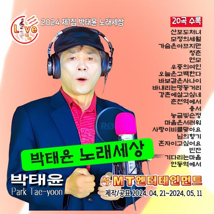 앨범명 - 박태윤의 2024 제1집 박태윤노래세상 음반은 2024.6.20 낮12시에 발매되었습니다