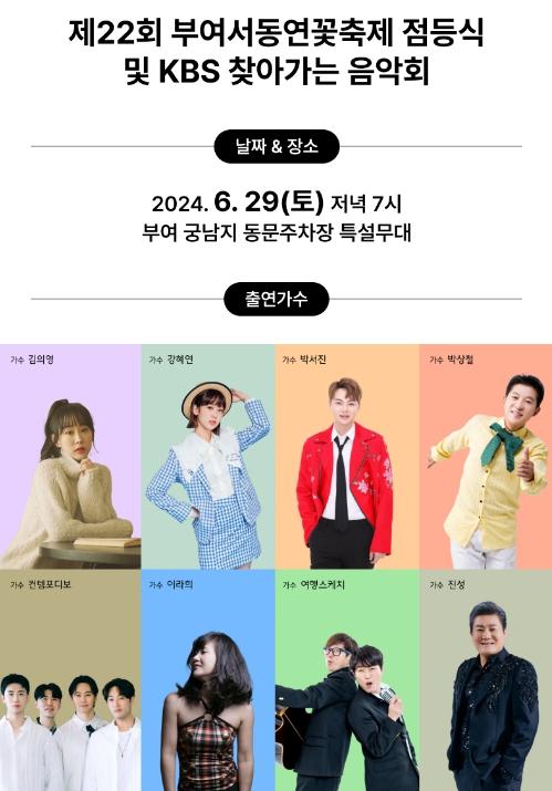 [singers news 씽어즈뉴스, 와보소기자] 부여군은 오는 6월 29일에 제22회 부여서동연꽃축제 경관조명 점등식과 KBS 찾아가는 음악회를 개최한다고 밝혔다.