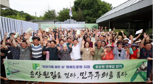 이날 ‘윤상원길을 걷다, 민주주의를 품다’를 주제로 개최한 걷기 행사는 명예도로명 부여를 기념하고, 오월 광주정신 계승을 다짐하는 장으로 마련했다.